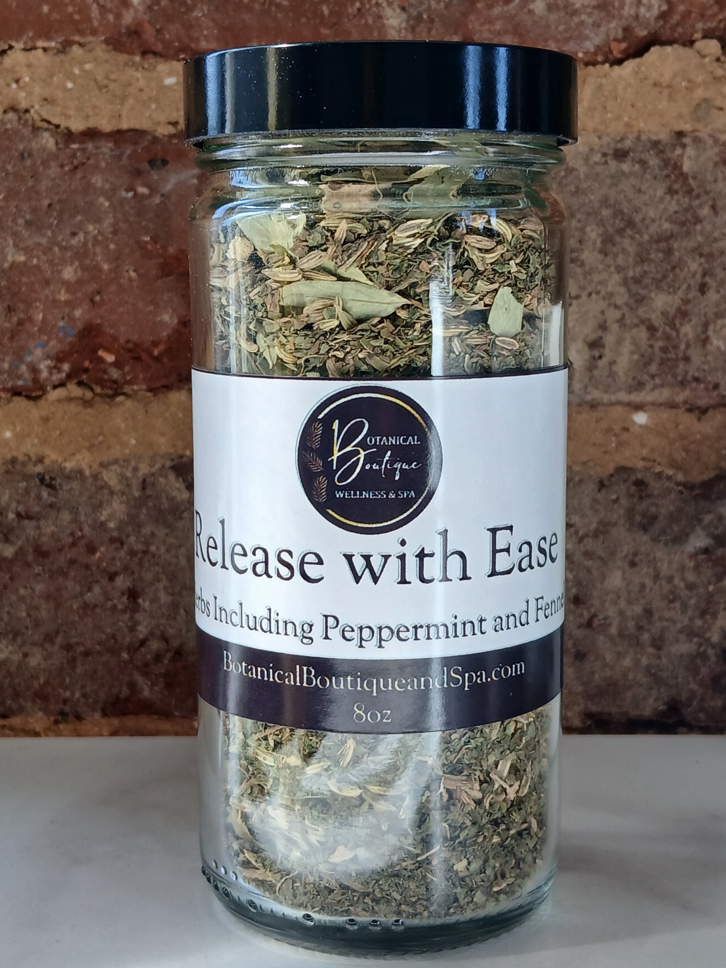 Our Release with Ease tea is created with a blend of herbs designed to support and nourish the digestive and lymphatic system while also working to move and rid waste from the body. Our tea includes a combination of herbs including red peppermint and fennel.